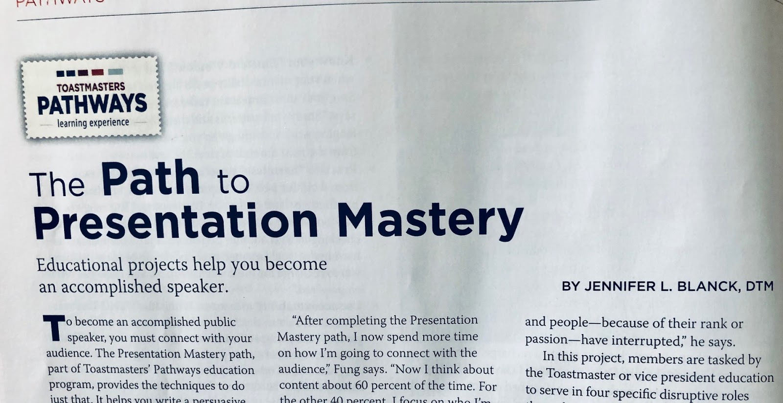 I also read again, the very interesting, wonderful article written by Jennifer Blanck, who did interview Robert Fung, Liza, Kaestner, Zain, and each added very useful parts what they learned from the Presentation Mastery path.